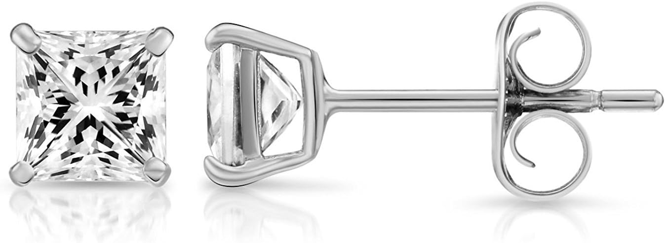 Beautifully crafted from solid 14k White Gold, these timeless stud earrings sparkle with a pair of brilliant Cubic Zirconia stones. The squared shaped, princess-cut CZ showcases the classic elegance of this unisex design.These lovely earrings are complete with 14k gold friction backings for a secure and comfortably fit.