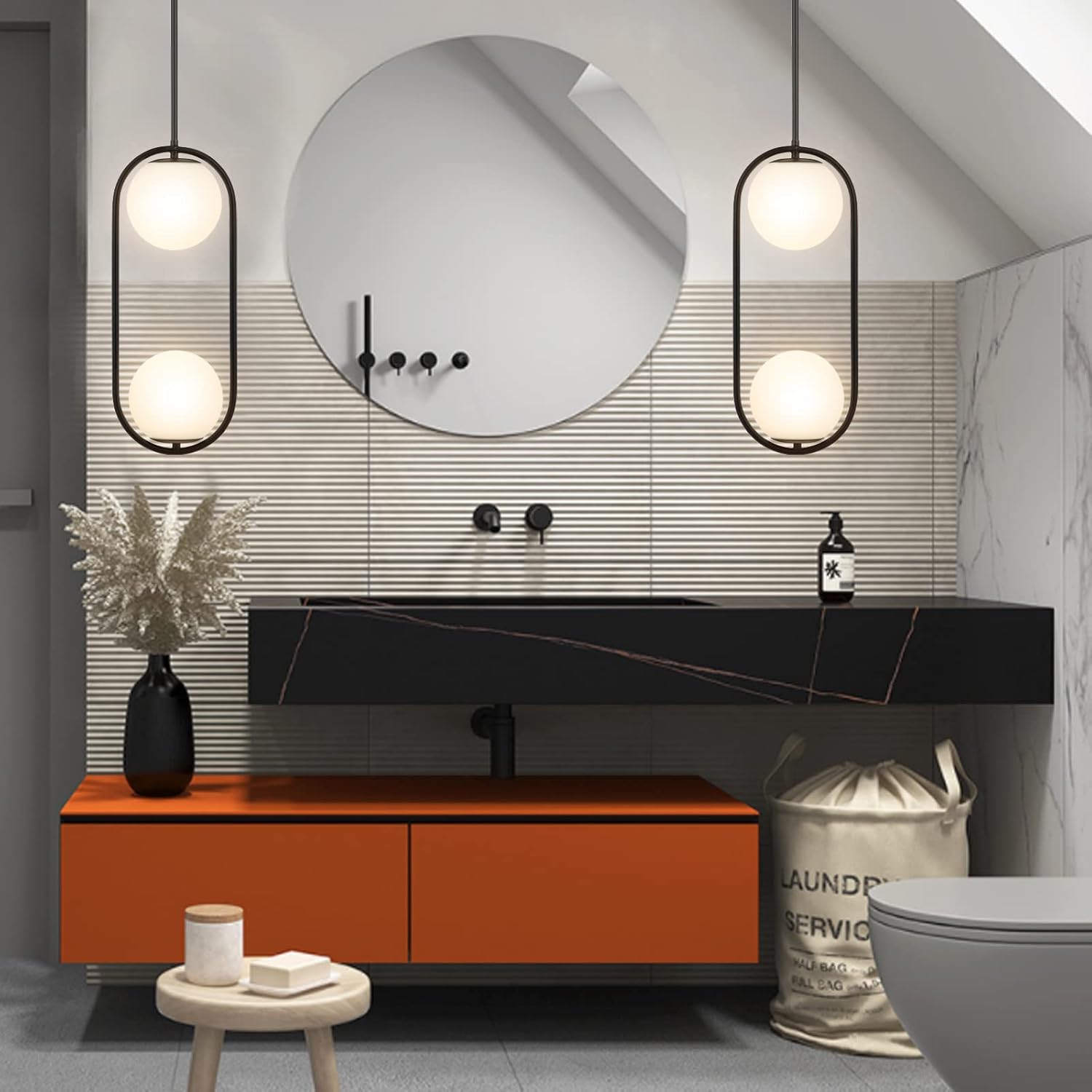 | Other Special Features of the Product | 2 Lights, 5.9” opal frosted White Globe Glass Lampshade, E26 cylindrical LED bulb is recommended., Sloped Ceiling Available& Adjustable Height |