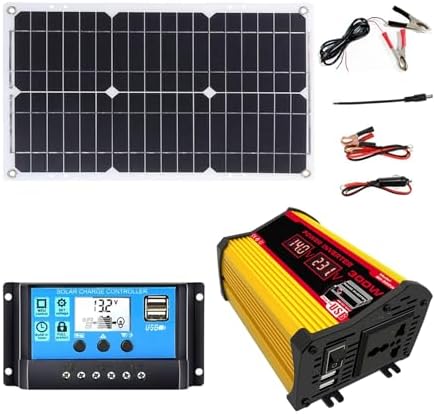 Introducing our versatile Solar Panel Kit, expertly designed to enhance your outdoor adventures while delivering efficient energy solutions. This kit features a high-performance monocrystalline silicon solar panel, measuring 420x280mm, with a sleek black finish. With an impressive conversion efficiency of 23-24%, it ensures maximum energy capture for your devices. Whether you’re biking through rugged terrains, hiking picturesque trails, or camping under the stars, our Solar Panel Kit is your reliable companion. Its IP65 waterproof rating means you can trust it to withstand various weather conditions, making it ideal for outdoor use. The included Car Power Inverter, compactly sized at 163x100x77mm, is crafted from durable ABS material. With an input voltage range of 10V-15V and an output voltage of AC 110V/220V, this inverter efficiently transforms your solar energy into usable power, boasting an impressive efficiency of 98% and a rated power of 300W. Our package comes complete with everything you need: an inverter, solar controller, solar panel, a pair of red and black battery clips, and a cigarette lighter. Detailed English manuals for both the inverter and solar controller are included, ensuring you have all the guidance needed for seamless setup and operation. Experience the freedom of solar energy during your travels, knowing you have a dependable power source for your devices. Whether you’re charging your phone, powering lights, or running small appliances, our Solar Panel Kit is designed to meet your energy needs efficiently and sustainably. Embrace the outdoors with confidence, equipped with our dependable Solar Panel Kit.