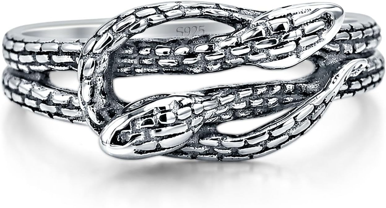Minimalist 8mm twisted snake ring crafted in solid 925 sterling silver. This oxidized vintage style band features a nature inspired serpent design symbolizing transformation and inner strength. The 8mm width provides confident presence while maintaining a sleek and wearable silhouette. SOME IMPORTANT SPECIFICATIONS & FEATURES:Metal Type: Sterling SilverMetal Stamp or Hallmark: 925Metal Purity: 92.5% Sterling. Gemstone Creation Method:Simulated. Face Measurements From South To North: 8mm(0.31") CARE INSTRUCTIONS & TIPS:1. To clean the metal, it is recommended to use our signature jewelry polishing cloth that is infused with a special jewelry cleaner.2. You can also use a soft, 100% cotton cloth. It is recommended that you have one cleaning cloth for gold and a separate one for silver.Wearing this kind of bridal ring will make you more elegant, more glamorous, more attractive. Also, it will be an ideal gift for your girlfriend, wife, fiancee, daughter, mother, your special someone, or just yourself. This graceful and beautiful fashion thumb Rings set is adorned with sparkly cubic zirconia, which can help you draw admiration on any occasion.