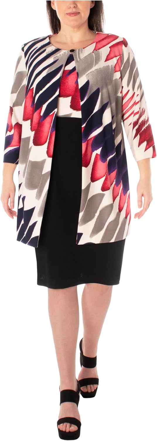 Take the guesswork out of busy mornings with this sophisticated sheath dress and matching longline jacket, a perfect look for any workweek wardrobe. This 2-piece set creates a sophisticated and effortless look; easily transitioned from day to night. Wear-to-work or wear to work-it this dress is flattering and comfortable. The 3/4 length sleeves on the jacket make it easy to wear your favorite bracelets or watches.