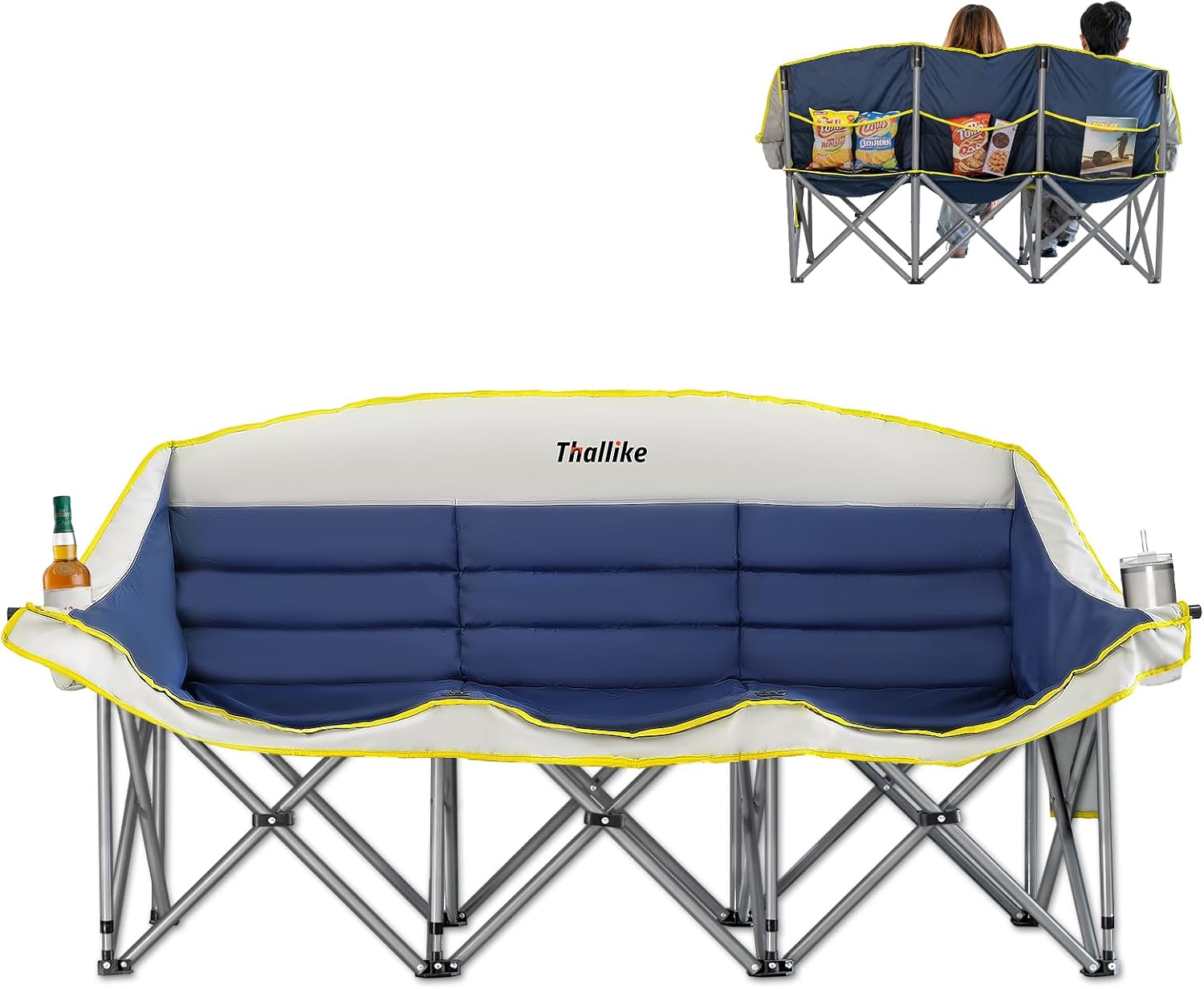 | Additional Features | 2 Enlarged Cup Holders & 2 Inner Side Mesh Pocket & 2 Large Backrest Mesh Pocket, 800LB Weight Load Capacity & Sturdy Structure, 900g/m² High-Quality PP Padded, Foldable & Portable, Oversized Double Camping Chair with Back Support |