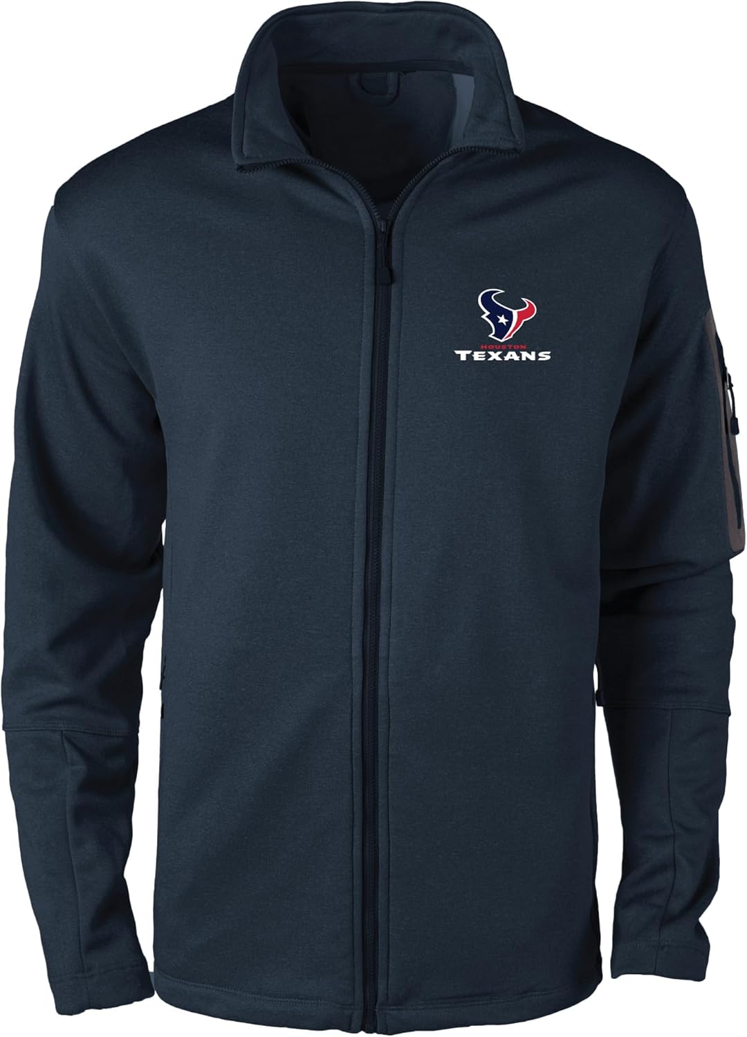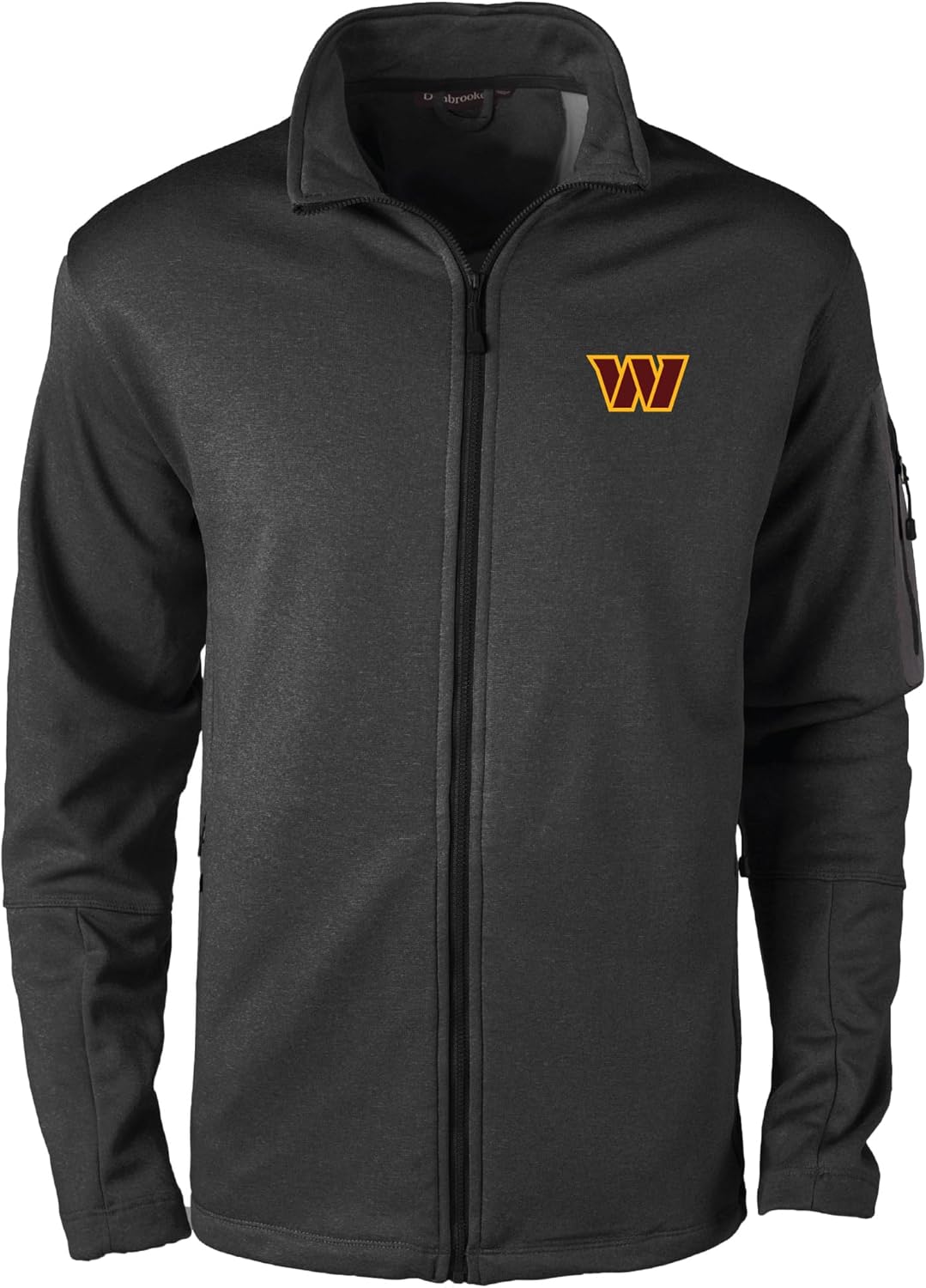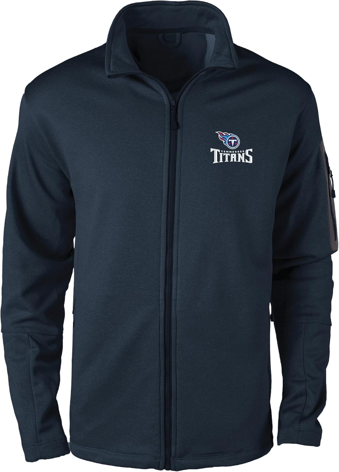 Warm full zip jacket with teflon coating that repels water and stains.