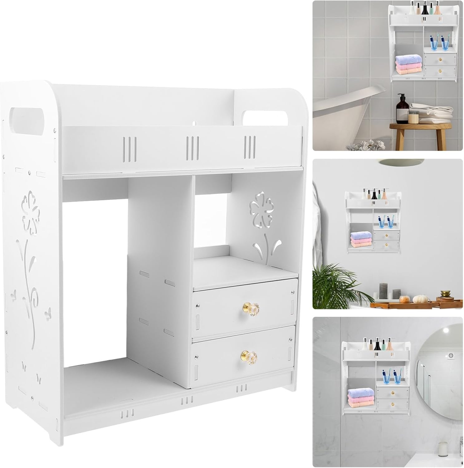 DescriptionThis bathroom wall-mounted storage rack with drawer design is the good solution for a cluttered bathroom. With its multiple layers and large capacity, it can easily store all your bathroom essentials. The drawer design makes it easy to access and organize your items, while the wall-mounted installation saves space and keeps your bathroom tidy.Features-Color:White-Material:Plastic-Size:43.00X38.00X18.00cm/16.90X14.93X7.07in- : The design of the bathroom wall-mounted storage rack features multiple layers and ample storage space-Drawer Design: The drawer design of the bathroom storage rack allows for easy access and organization of items-Easy Installing: The wall-mounted installation of the storage rack helps to save space in the bathroom-Durability: The Storage Rack is wear-resistant, ensuring durability and protection water damage-Sleek Appearance: The simple and stylish appearance of the storage rack makes it suitable for any bathroom decor- Color: White.- Size: 43.00X38.00X18.00CM.Package Including1 x wall organizer