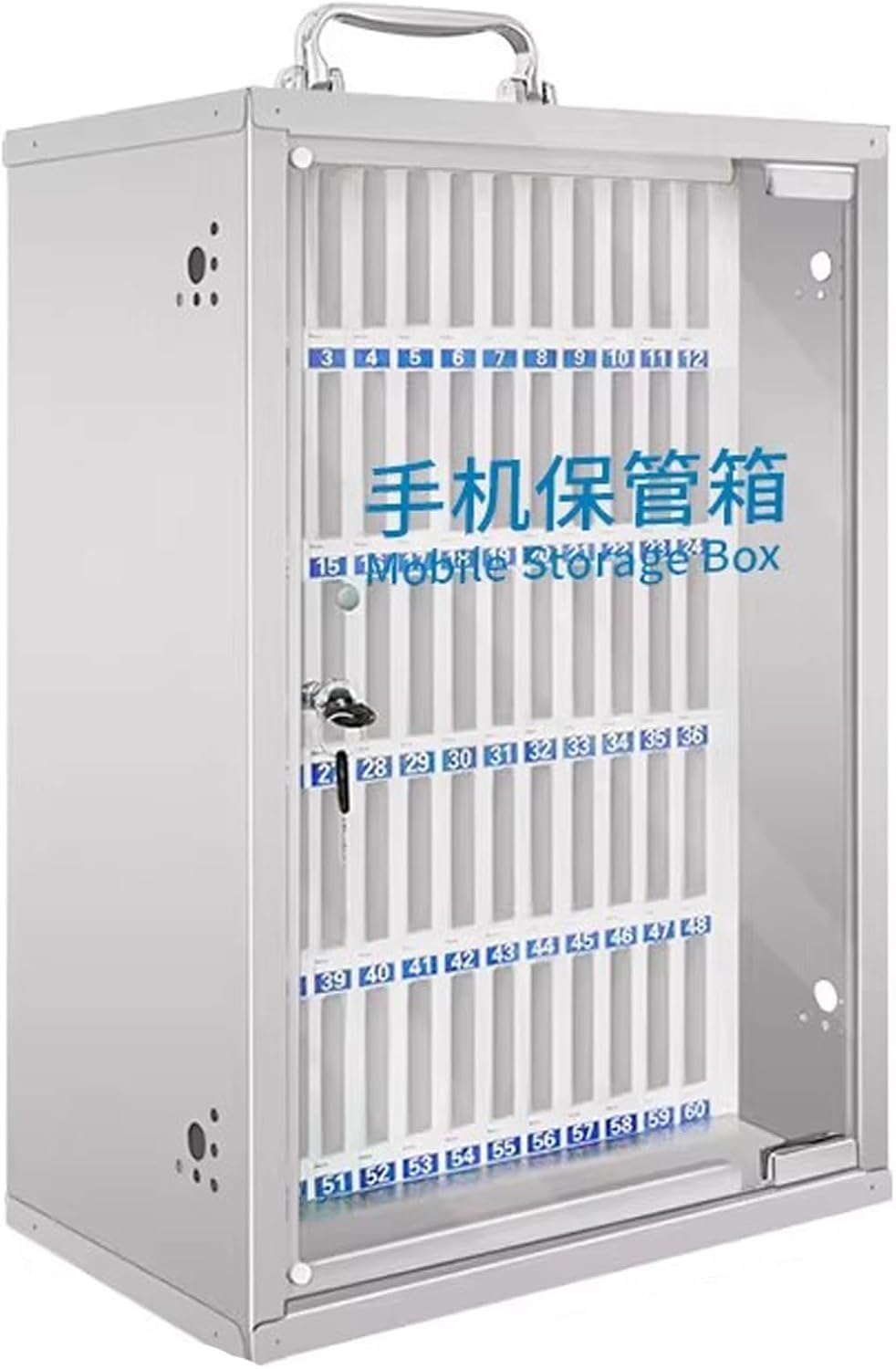 LYXWGRZD efficient phone storage solution allows you to securely store multiple devices while keeping them organized and easily accessible. The wall-mount design saves installation space, while the built-in security lock gives you peace of mind, preventing unauthorized device access. The portable design of this phone storage cabinet makes it a versatile choice for a variety of occasions, whether you need it in the classroom or at a corporate event. Name: Mobile phone safeMaterial: Stainless SteelNumber of mobile phones that can be stored: 12/24/36/48/60 digitsSize:12 bits:20.2*21*24.2cm (7.9*8.2*9.5 inches)24 bits:25.8*21*35.2cm (10.1*8.2*13.8 inches)36 bits:28.5*21*46cm (11.2*8.2*18.1 inches)48 bits:37*21*46cm (14.5*8.2*18.1 inches)60 bits:37*21*57cm (14.5*8.2*22.4 inchesWarm reminder:We only sell cell phone storage cabinets, excluding other reference items.Different measurement methods have slightly different sizes. There may be an error of 1-3CM, please refer to the actual product.Actual colors and photos may be slightly different due to different shooting tools, lighting and display parameters.
