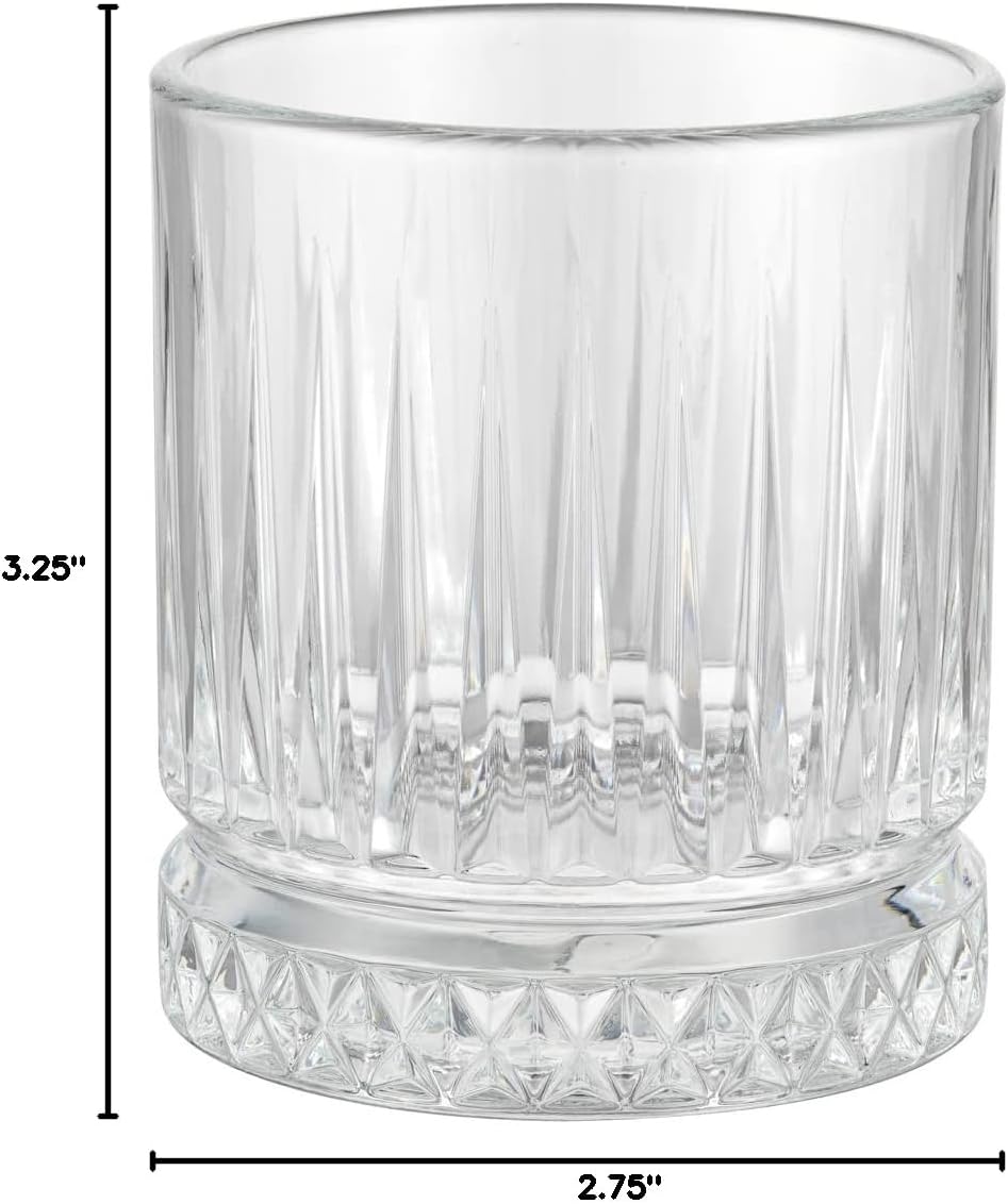 Elegantly serve your drinks with our Elysia 7-Ounce Whiskey Glasses. With a sophisticated, cut glass design, these whiskey glasses are perfect for formal restaurants or catering events. Featuring a lead-free construction, these whiskey tumblers are strong and sturdy to withstand daily use. Built with a heavy base, these bar glasses provide superior balance to avoid tipping and creating a mess. For an effortless clean up after use, these clear glasses are dishwasher-safe. Measuring 2.75 inches in diameter by 3.25 inches in height, these glasses can be filled with up to 7 ounces of your customer's preferred whiskey, bourbon, or scotch drinks. Sold in a 12 count box.