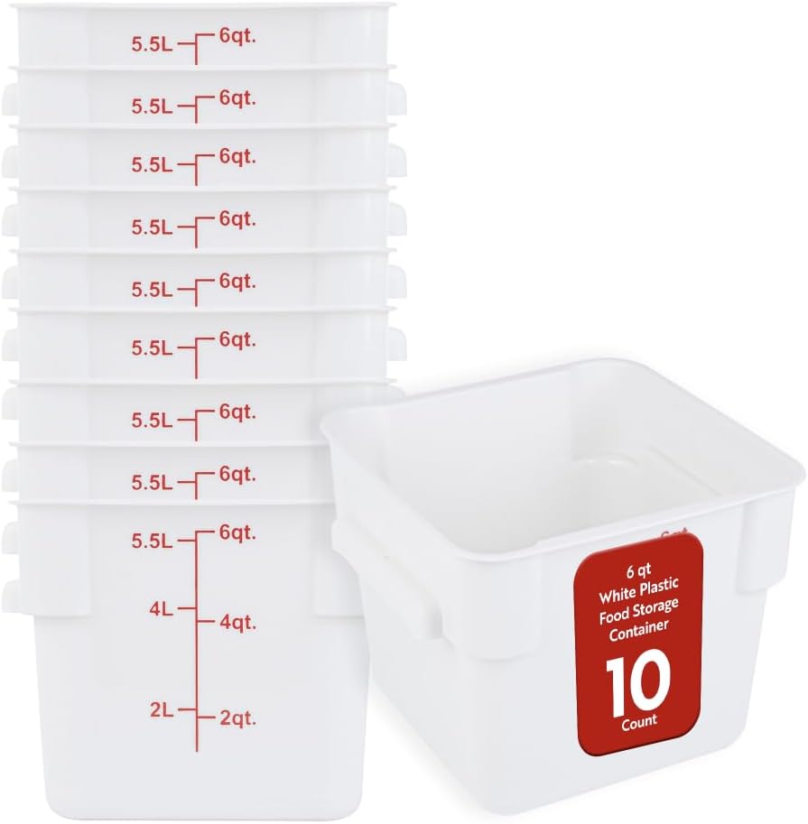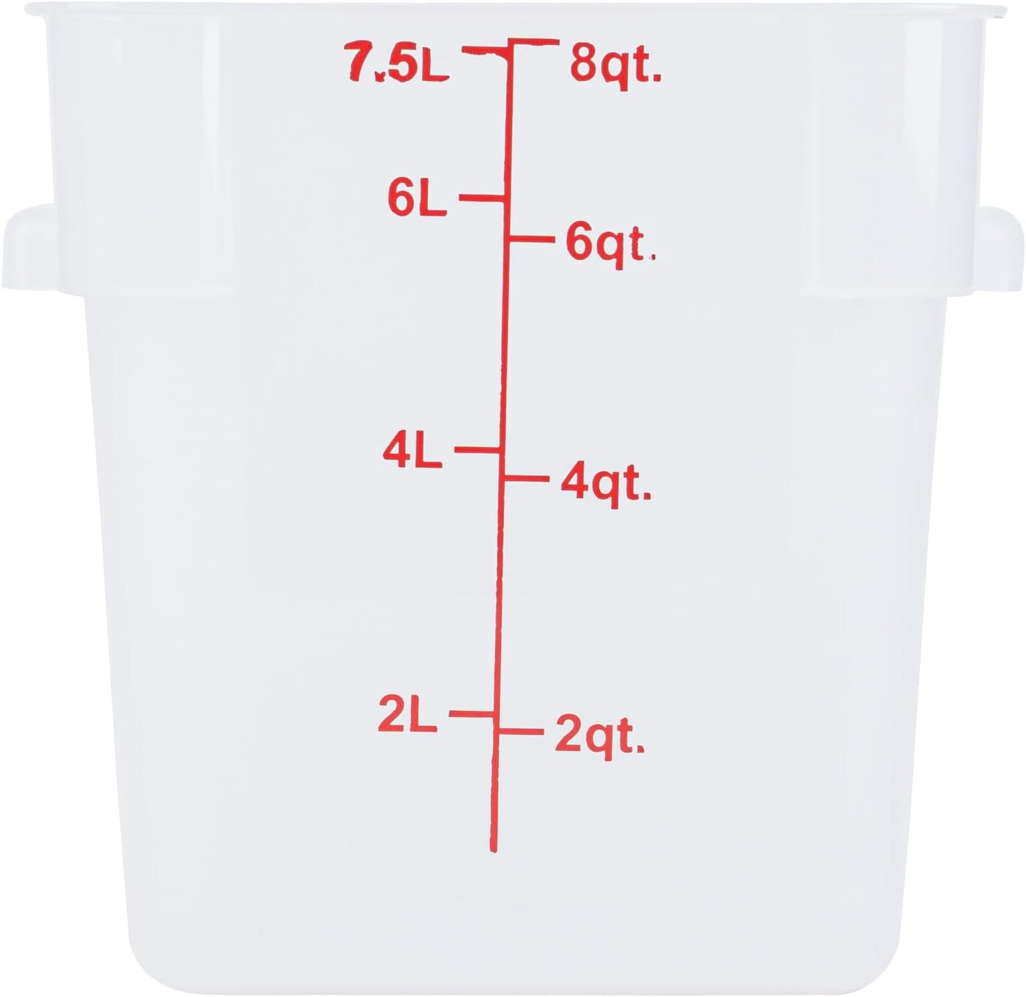 Enhance kitchen efficiency with reliable portion control containers. Met Lux Portion-Control Square Food Container offers an 8.75-inch by 8.75-inch by 8.5-inch size, featuring red graduations that enable precise portion control to minimize waste and optimize food cost management. Constructed from durable polypropylene plastic, this polypropylene storage container is designed for longevity, making it ideal for fast-paced settings. Its stable handles ensure effortless transport and minimize spillage, which is crucial in managing kitchen logistics and maintaining cleanliness. The dishwasher-safe design supports easy, efficient cleaning, saving valuable time in busy foodservice operations. This kitchen storage container is translucent, allowing for quick identification of contents, which enhances workflow in high-demand kitchens. Choose reliable storage solutions that boost operational efficiency and control. Each order includes 10 Met Lux Portion-Control Square Food Containers.