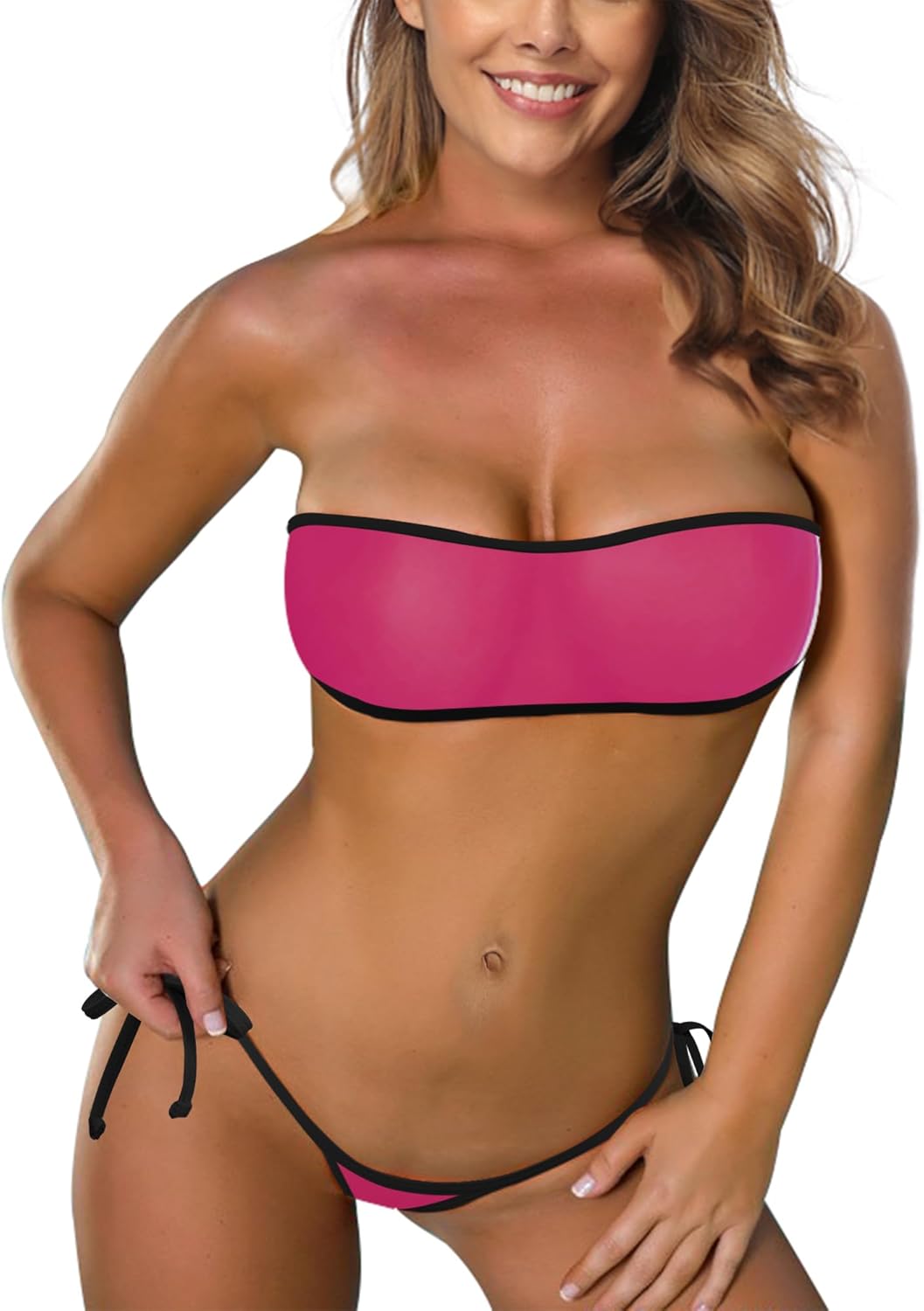 🌴- See Through bandeau Bikini Top provide string ties at back for a better support.The string can be cut as needed.
