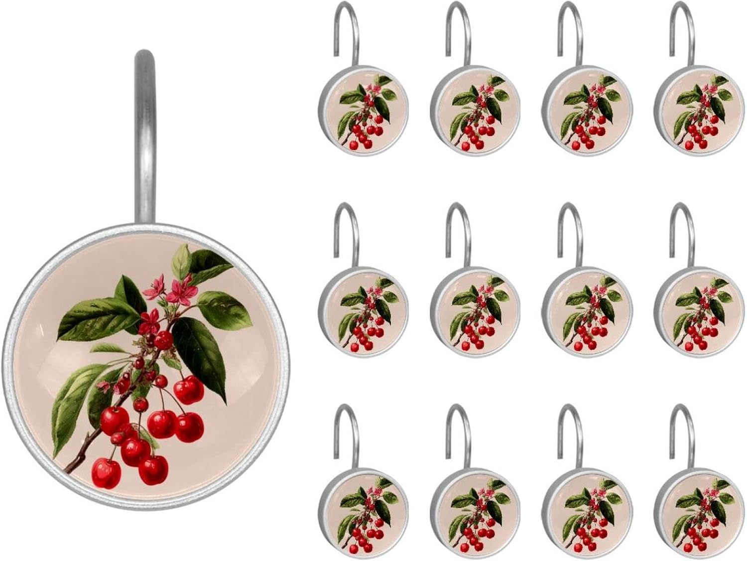MATERIAL: glass, stainless steel. These shower curtain hooks can be decoration bathroom and will be long-lasting.12 pieces of shower curtain hooks, round crystal glass decoration, printed patterns, silver hooks to match various styles of bathroom shower curtains. SIZE: Crystal glass diameter of round shower curtain hook is 1.45x1.45in/ 3.7x3.7cm. The shower curtain hooks diameter is about 1.1in, 12 pieces shower curtain hooks are suitable for rod of 8-28mm(0.3"-1.1"). RUST RESISTANT:Shower hooks are made of stainless steel and crystal glass, which is durable, rust-proof and corrosion-resistant, it will not rust suitable for wet bathroom environment. EASY TO INSTALL:Hand the shower curtain hooks hold securely on straight or curved shower curtain rods,slid easily and smoothly. Easy to install and decorate your bathroom. BEAUTIFUL AND ELEGANT:Beautiful Love hook add charming scenery for your bathroom, baby room, bedroom, living room, and the gorgeous style is easy to match with any kinds of bathroom shower curtain. EASY GLIDE: Open and close your shower curtain quickly and easily with the Shower Hooks, easily glides on shower curtain rods and tension rods. No snagging; no effort; no hassle PACKAGE: 12 shower curtain hooks in a pack.The bathroom curtain hook has a smooth appearance and can be hung on the pole to pull it at will. Special price 12 sets to meet your needs.