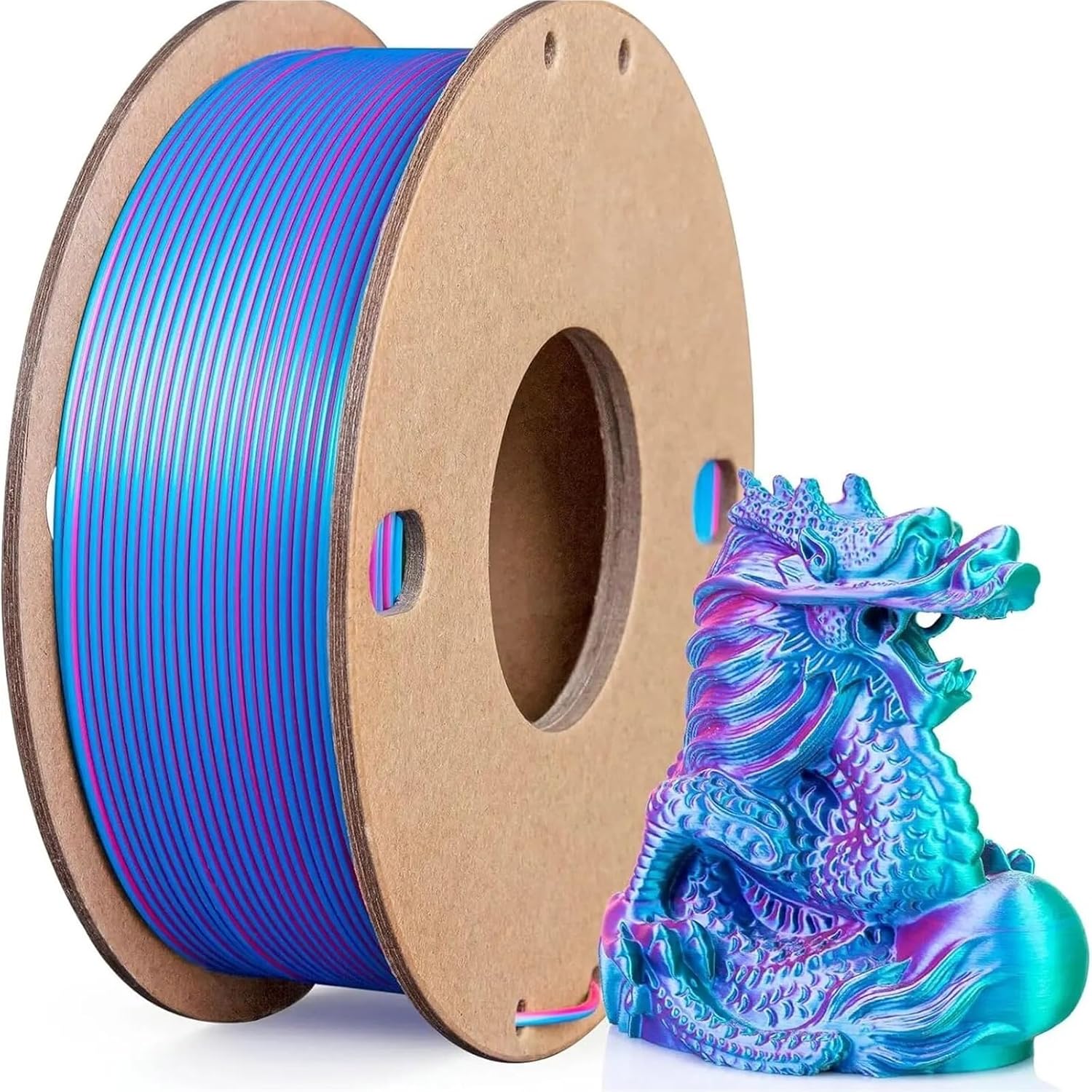 Introducing our revolutionary 3D printing filament - Multi-Color(Dual Color or Tricolor) 250g(0.55lbs). Designed to address user pain points, we offer both 2-color and 3-color options, providing you with unlimited creativity and vibrant printing experiences.PLA Filament Features1. Environmental protection , , biodegradable ;2. No Bubble , Low shrinkage , bright color ;It is suitable for all types of FDM 3D printers , suitable for printing crafts , artworks and industrial design samples, etc.PLA Filament SpecificationsFilament Material : PLAFilament Diameter : 1.75±0.03mmPrint Speed : 50-80mm/sRecommended extruding temperature: 185-210°C ,heatbed temperature:40-60°CWhen not heating : need glueNet Weight : 250g(0.55lbs)Package Weight:413g(0.91lbs)Package List:250g(0.55lbs) 3D Printer Filament *1Multi-Color Options:Rose Red&Sky Blue The combination of vibrant rose red and clear sky blue creates a captivating color contrast adding unique charm to your creationsGoldRed With its luxurious and warm tone the golden red color injects a sense of opulence and distinctive style into your printed worksDark Blue&Green Featuring deep and serene shades of blue and green this color choice adds depth and a sense of tranquility to your creationsRose RedSky BlueGreen Blending rose red sky blue and green together, it creates a dazzling and eye-catching effect, making your prints stand out.Sky Blue&Green The refreshing combination of sky blue and green evokes a sense of serenity and harmony lending a light and airy feel to your printed worksRose RedDark Blue The passionate fusion of rose pink and dark blue produces works that are full of tension and allureThe MultiColor 250g(0.55lbs) 3D printing filament offers you more choices and inspiration, making your creations more vivid and exciting. Whether you are an individual enthusiast or a professional designer, this filament meets your high demands for color and quality.We are committed to providing high-quality filaments, ensuring that each spool undergoes rigorous quality testing to guarantee smooth printing processes. The premium materials used result in long-lasting prints with vibrant colors. Moreover, our filaments are compatible with various 3D printer brands, ensuring convenient usage for you.Purchase the Multi-Color 250g(0.55lbs) 3D printing filament now and unleash your creativity and imagination to produce unique and extraordinary creations!==========High-concerned chemical : NoneShelf Life : 2 YearsMaterial : PLAForm : SolidOrigin : Mainland China