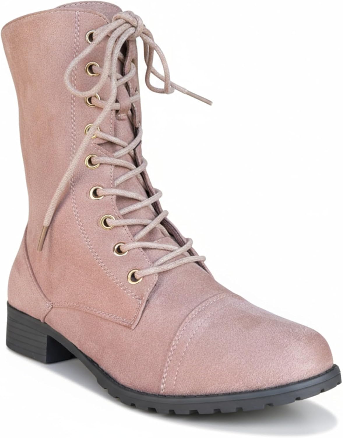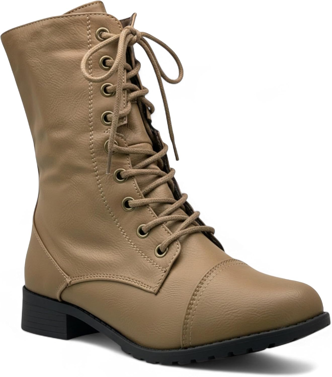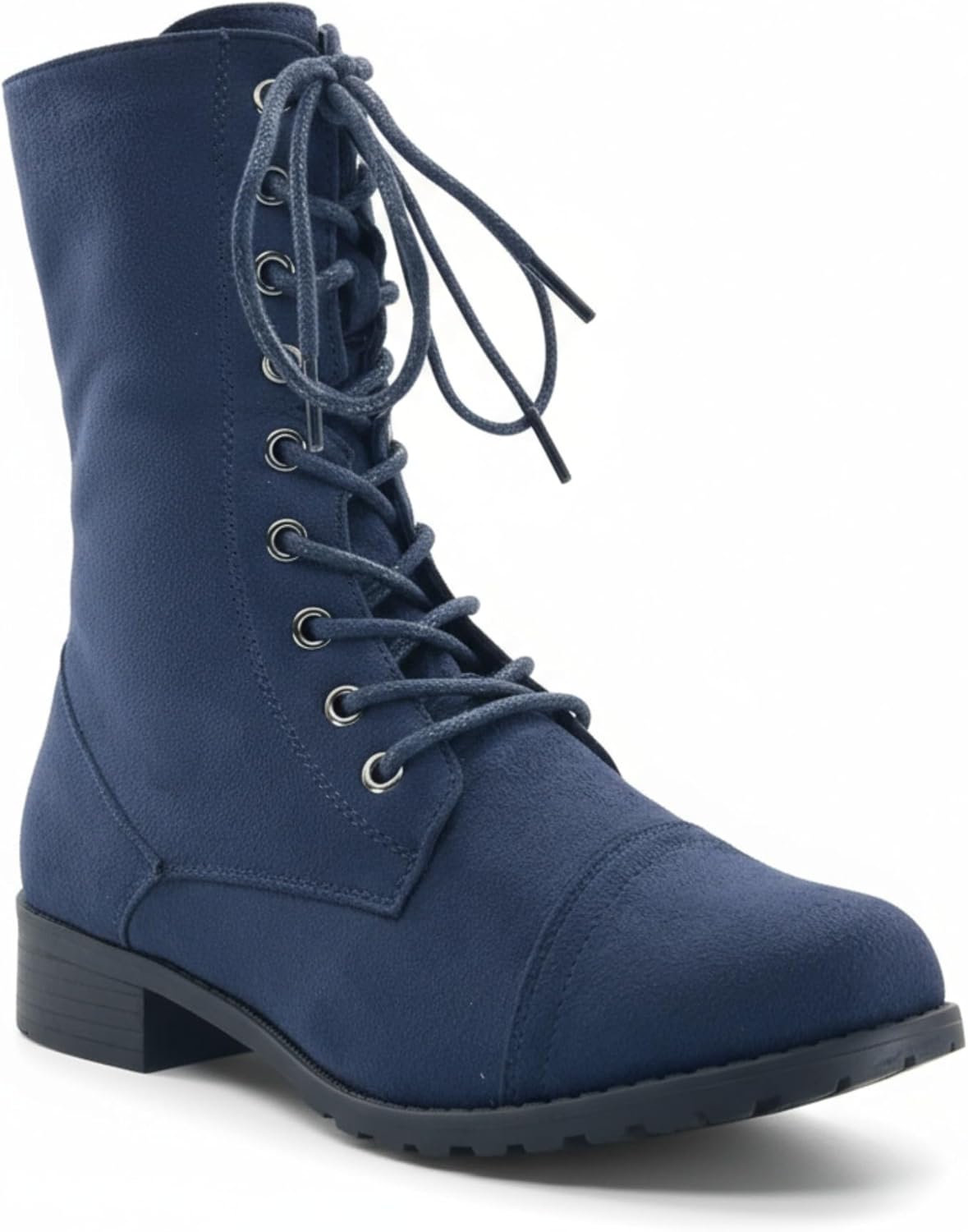 Women's Lace-Up Combat Boots - Classic Mid-Calf Military Style with Side Zipper. Step into timeless style and all-day comfort with these sleek lace-up combat boots. Crafted from faux leather, these mid-calf boots feature a polished, matte finish that effortlessly elevates any outfit.