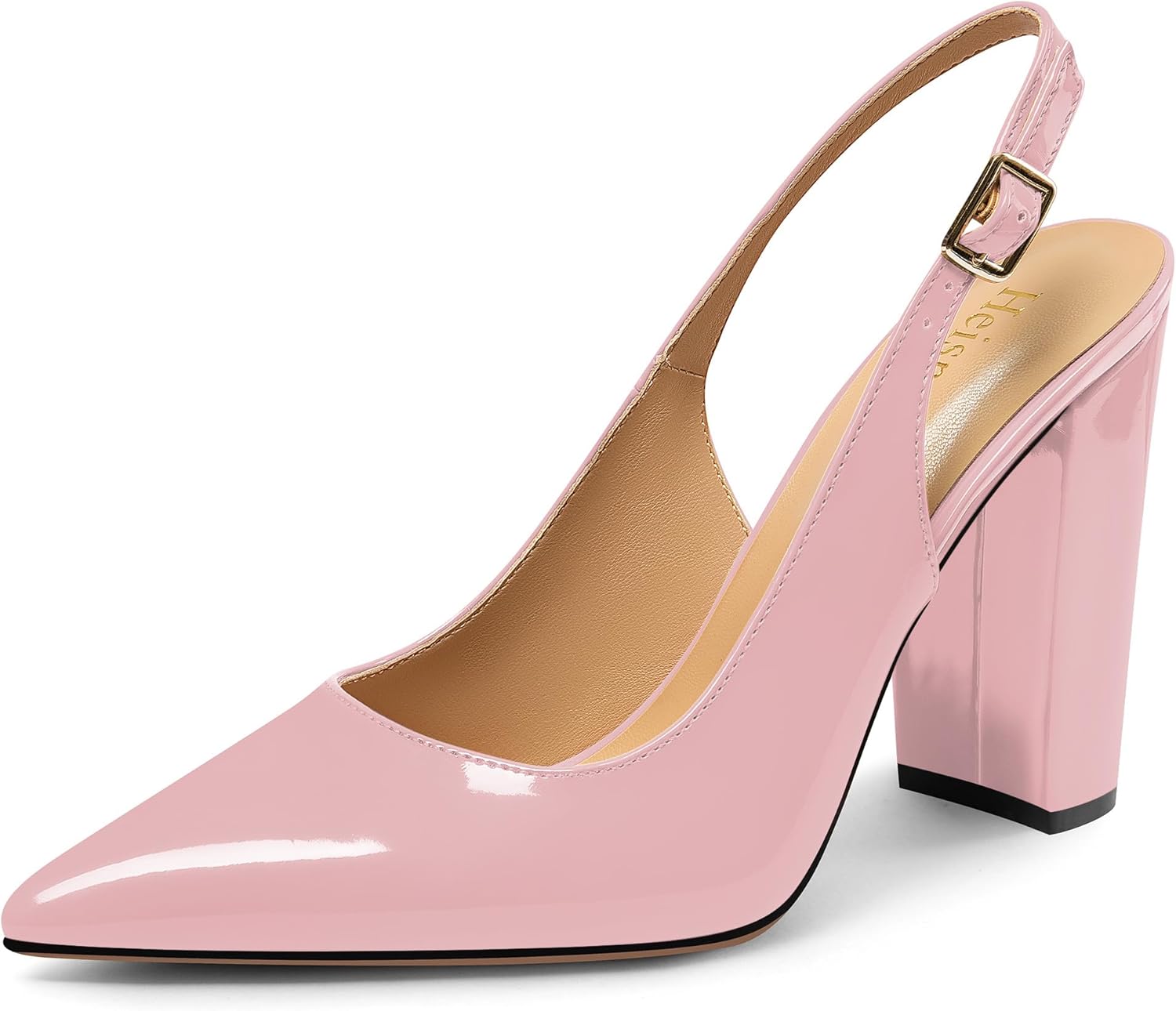 Heisnemca Chunky Block Heels for Women Slingback Patent Closed Pointed Toe Pumps Slip on Heels Dress Wedding Shoes