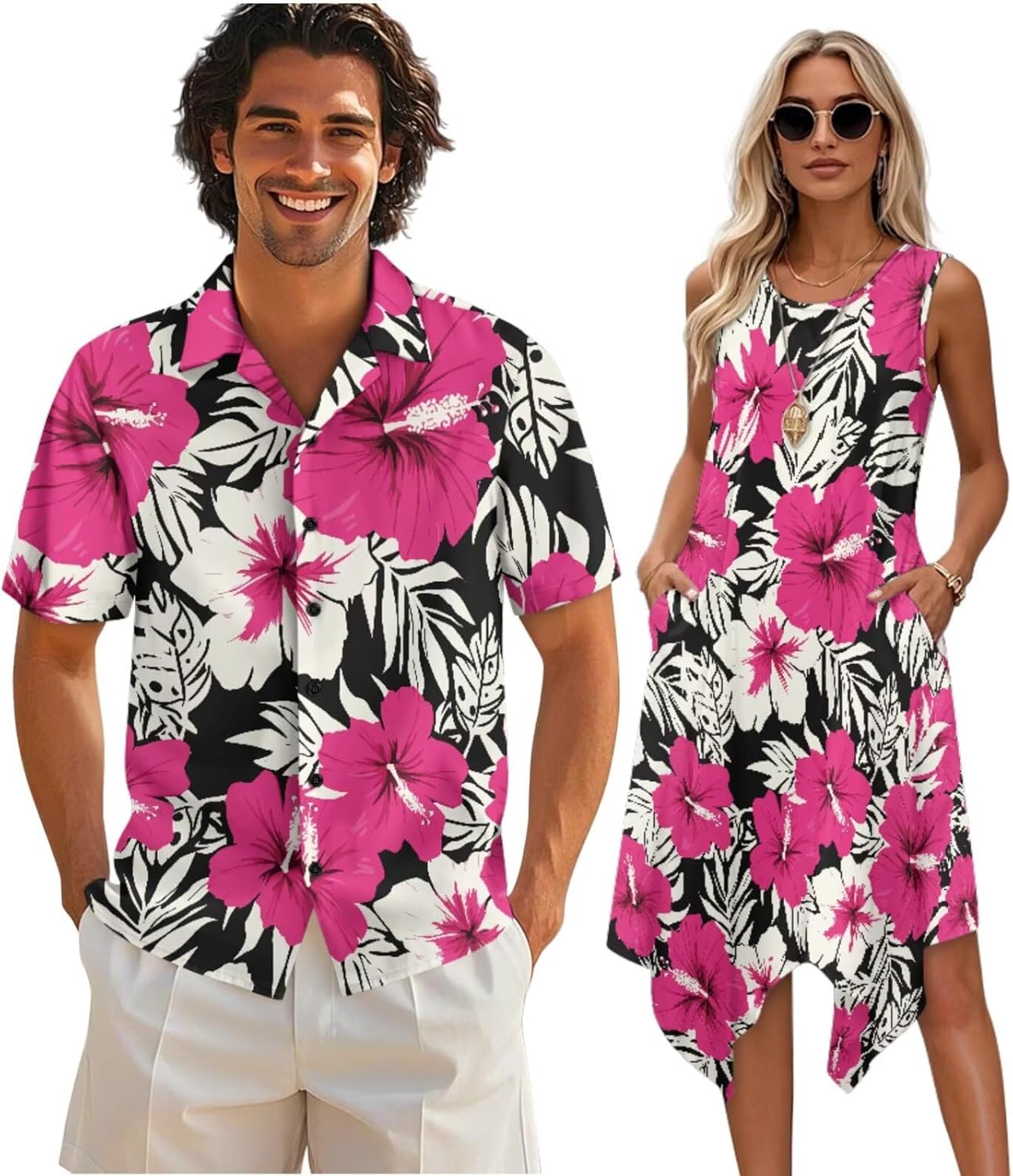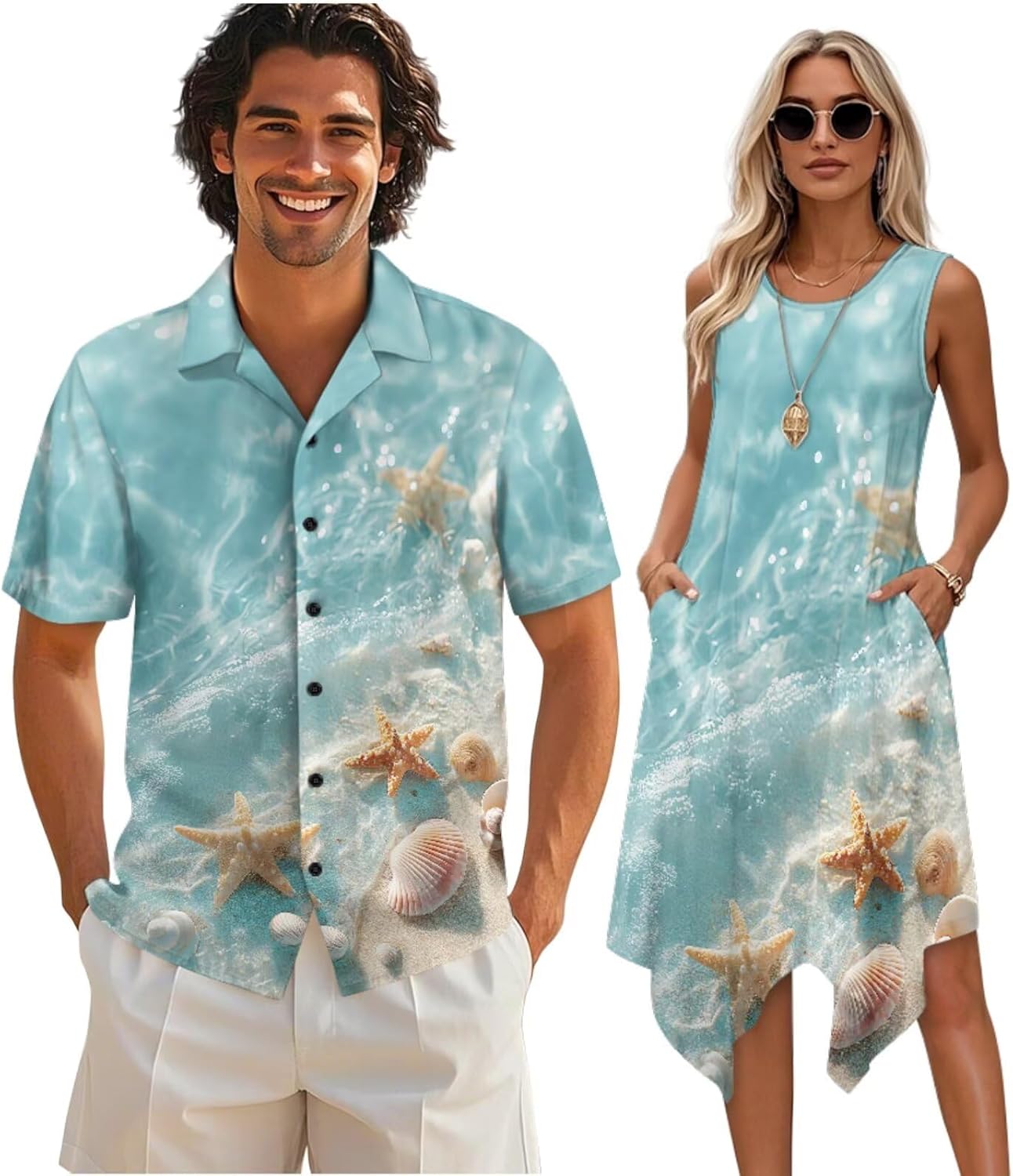 Package:1* YECARYPOD Matchable Couple Hawaiian Luau Men Shirt Summer Beach Tropical Dresses for Women Casual Loose Fit Sleeveless Sundress Matchable Couple Travel Outfit Product: -Size:Women sizes are from S to 5XL,Men sizes are from S to 5XL -Material:soft,lightweight, breathable, wrinkle free fabric,machine washable -Various 3D print design,like valentines love heart,st.patrick green leaf,tropical floral leaf,camo dead leaf,vintage floral,cow print,color splatter,camouflage,leopard print,butterfly,axolotl,cat,puppy,horse,fire flame,rainbow,mushroom,floral,strawberry,etc