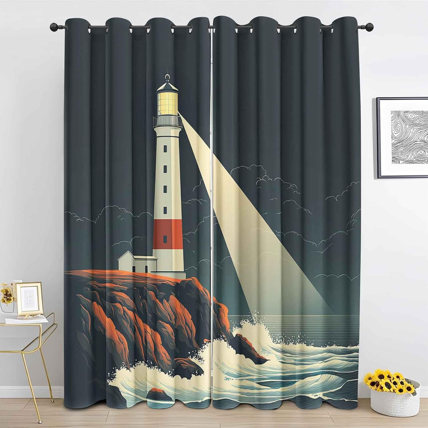 These print curtains are ideal for room divider, kitchen, farmhouse, cinema, basement, coffee shop, dormitory, hotel so on - Unique Design: · 3D printing, the pattern does not fade · Save energy costs by insulating against heat and cold · Reduce noises from busy streets and high-traffic areas · Protect furniture from sun damage and fading · Provides complete privacy when needed - Package Included: · Blackout window curtains 2 Pcs set ( two panels) - Material: Printed curtains are made of polyester microfiber fabric, the material feels soft and has no chemical odor, Notes: - Dont use sharp things scratching curtains - Measure carefully before selecting your desired size - As different computers display colors differently, the color of the actual item may vary slightly from the above images ——Find more printed curtains you like in our store——