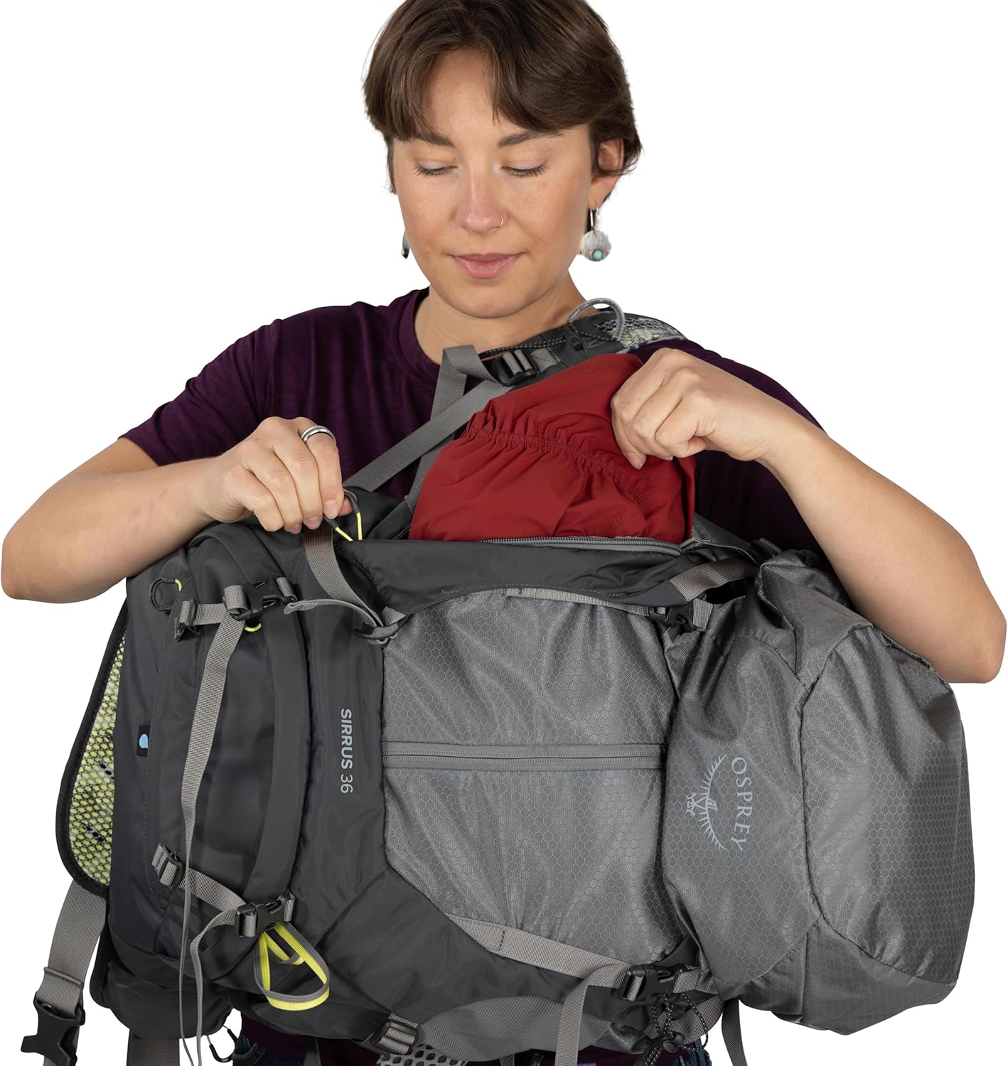Enjoy cloudlike comfort with this exceptionally ventilated top-loading hiking pack. Offering an adjustable women’s fit and spacious storage, the Sirrus 36 lends cloudlike comfort to day hikes and short overnights. A zippered collapsible lower compartment keep gear within reach, thoughtful pocketing wrangles small essentials and an integrated raincover deploys when you need it.