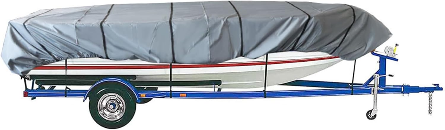 Three Colors Available: Black Grey BuleMaterial: PolyesterSizes available:210D 12ft length, beam width to 56inches210D 14ft length, Beam Width to 70inches210D 16ft length, beam width to 75inches210D 18ft length, beam width to 75inchesCompatibility:210D marine grade heavy duty trailerable boat cover replacement for Jon BoatFeatures:1.Double stitched seams,Elastic cord sewn along the bottom2.Elastic rope sewn into the hem to help hold tightly to your boat3.System quick release button and Easy to handle watchband4.Adjustable straps with quick-release buckles and elastic cord sewn into entire bottom hem provides a tight and custom fit5.This heavy duty boat cover designed for both long-term storage.Package Including:1 x Boat Cover1 x Storage Bag